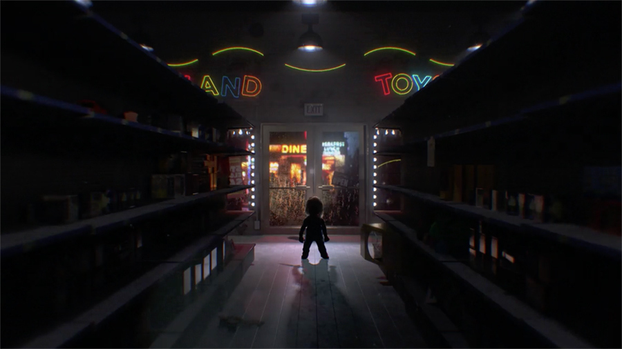 "The teaser opens in a toy store in the middle of the night, panning over sparsely stocked shelves of toys before whipping over to reveal Chucky standing in front of the entrance, barely illuminated by the store’s dim lights. Again, it’s brief, but as a fan of the original movies it absolutely set my hype train in motion."